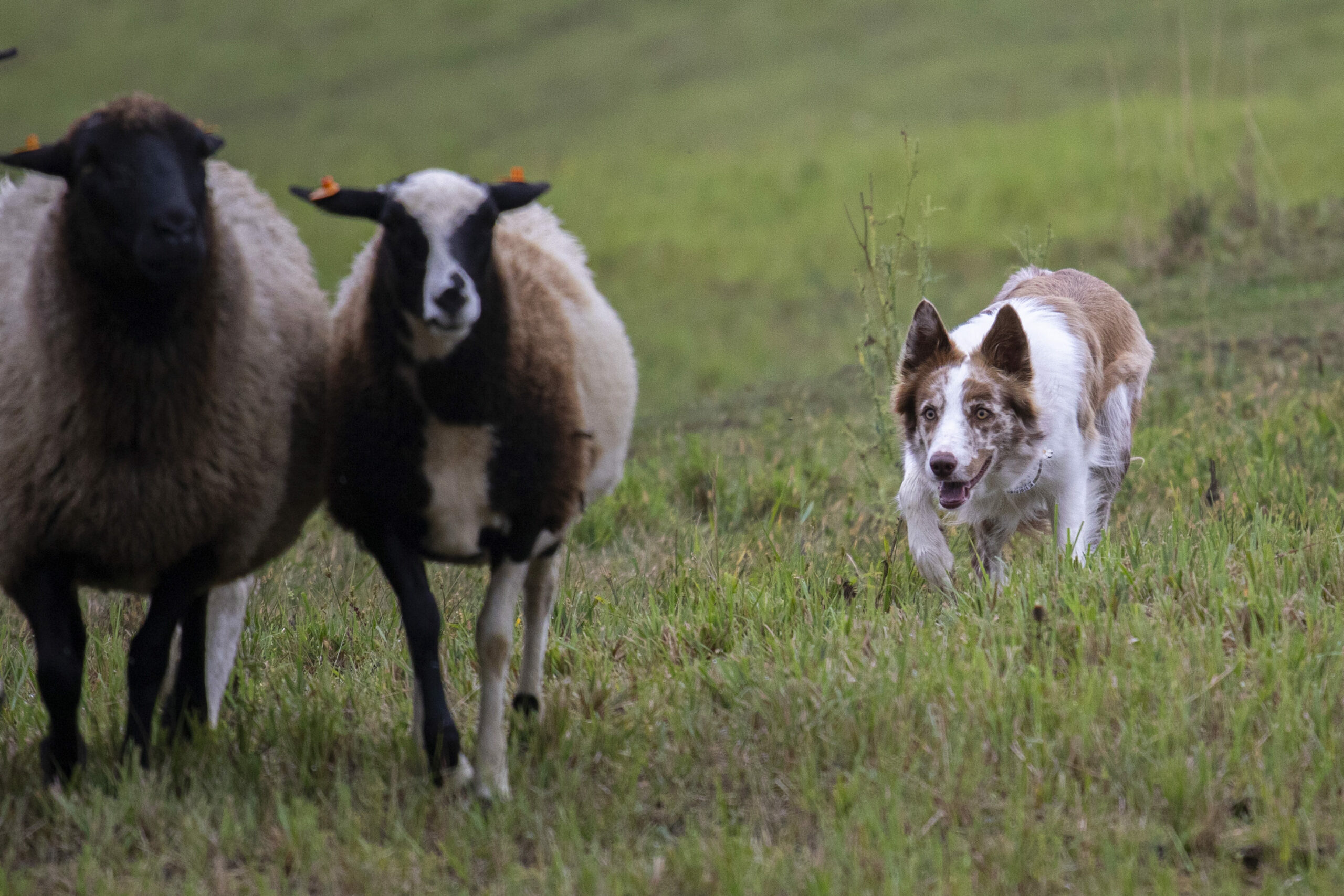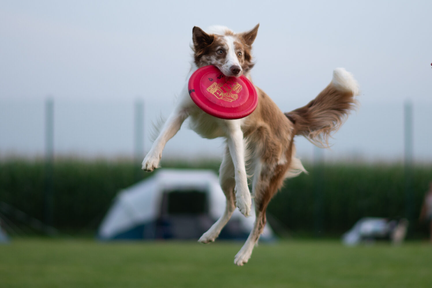 In frisbee, she inherited her father’s excellent and safe jumping technique. She retrieves quickly and enjoys it — it came naturally to her, requiring no training. She tracks the disc’s flight well, effectively chases fast throws, and doesn’t jump too early — she can miscalculate in strong wind but quickly learns from it. Hauru learns fast and is determined in everything she does, which has its pros and cons. Without consistency, she’s equally persistent in developing “naughty” behaviors as she is in her work. She’s very responsive to body language and notices even the slightest movement in herding or agility, so I had to learn to always align my physical cues with verbal commands. She has no issues working with strangers, even competing in frisbee with people she met once in her life. Her quality of work doesn’t suffer without me by her side — she’s just as fast, motivated, and focused.